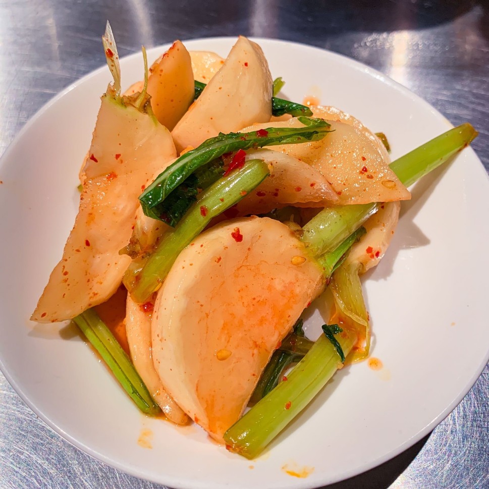 キムチ感はあまり強くなく、カブの塩漬けをキムチの素で和えた感じでしょうか。