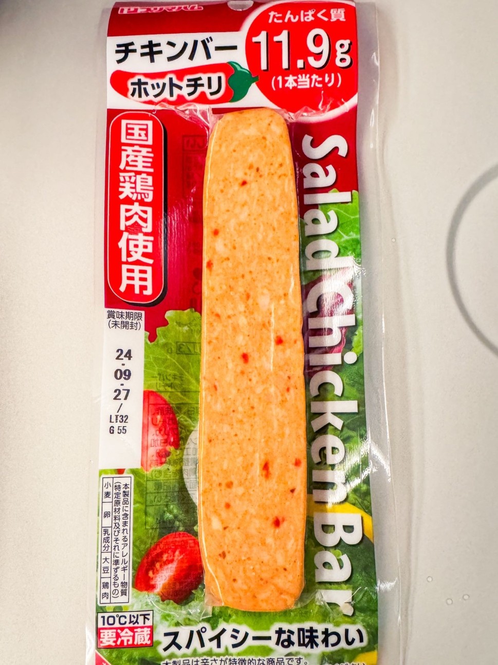 プレーンのチキンバーを純粋に唐辛子で辛くした感じ。変に余計な風味が付いていないので、そのまま食べるだけでなく他の食材と合わせてもよさそうです。