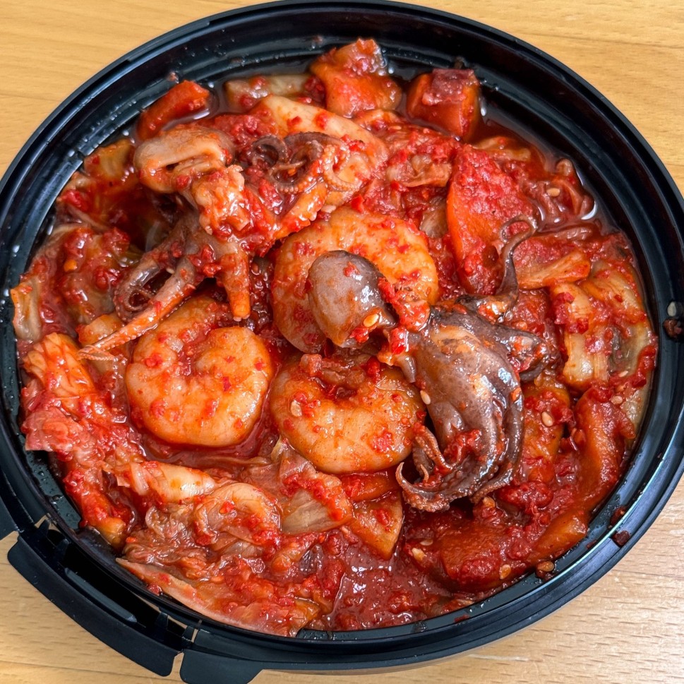 丸ごとイイダコやぷっくりしたむきエビが並んでいてゴージャスな見た目。キムチの味としては、けっこう甘さを感じるさっぱり系。酸味のある熟成したキムチが好きな私の好みとは方向性が違いましたが、これは個人の嗜好の問題。