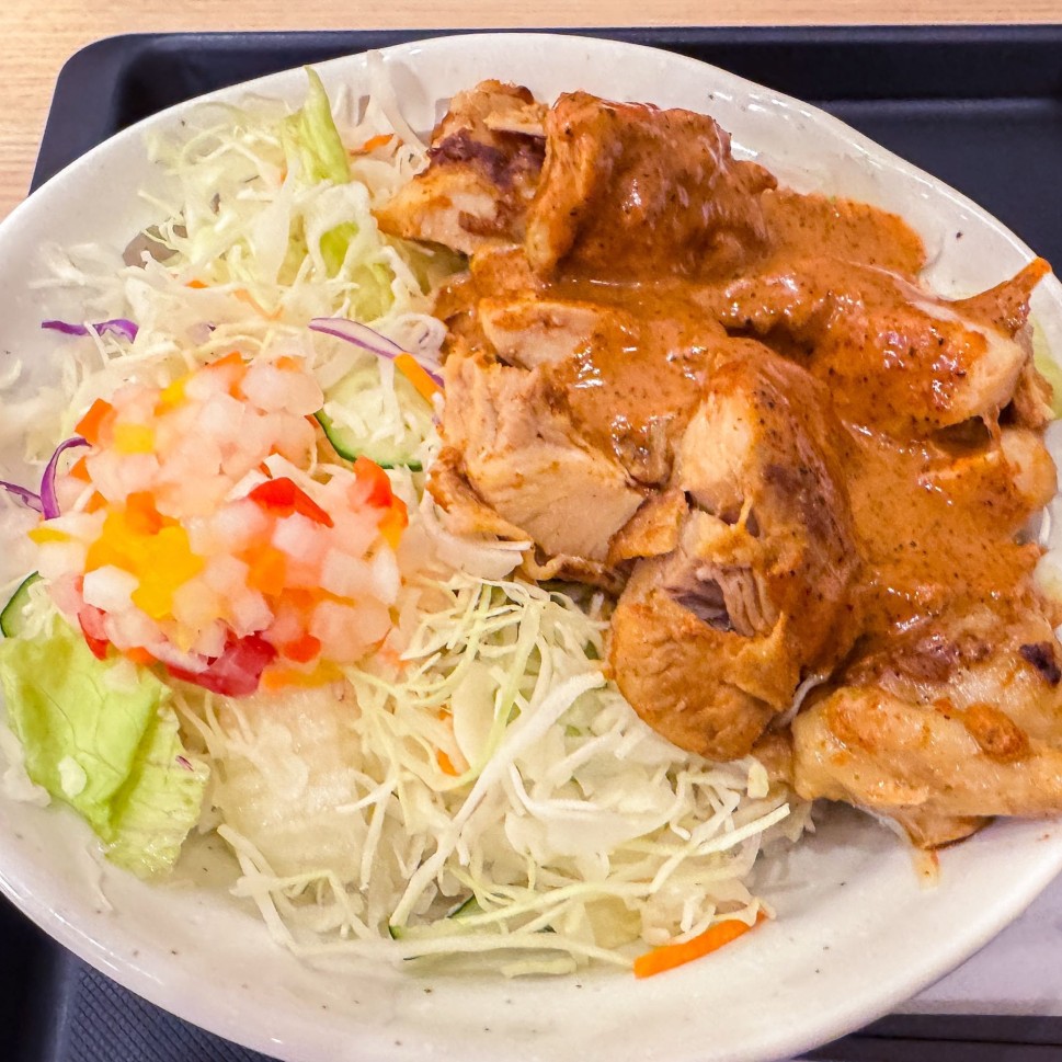 スパイシーなソースがたっぷり掛かったケバブ丼。