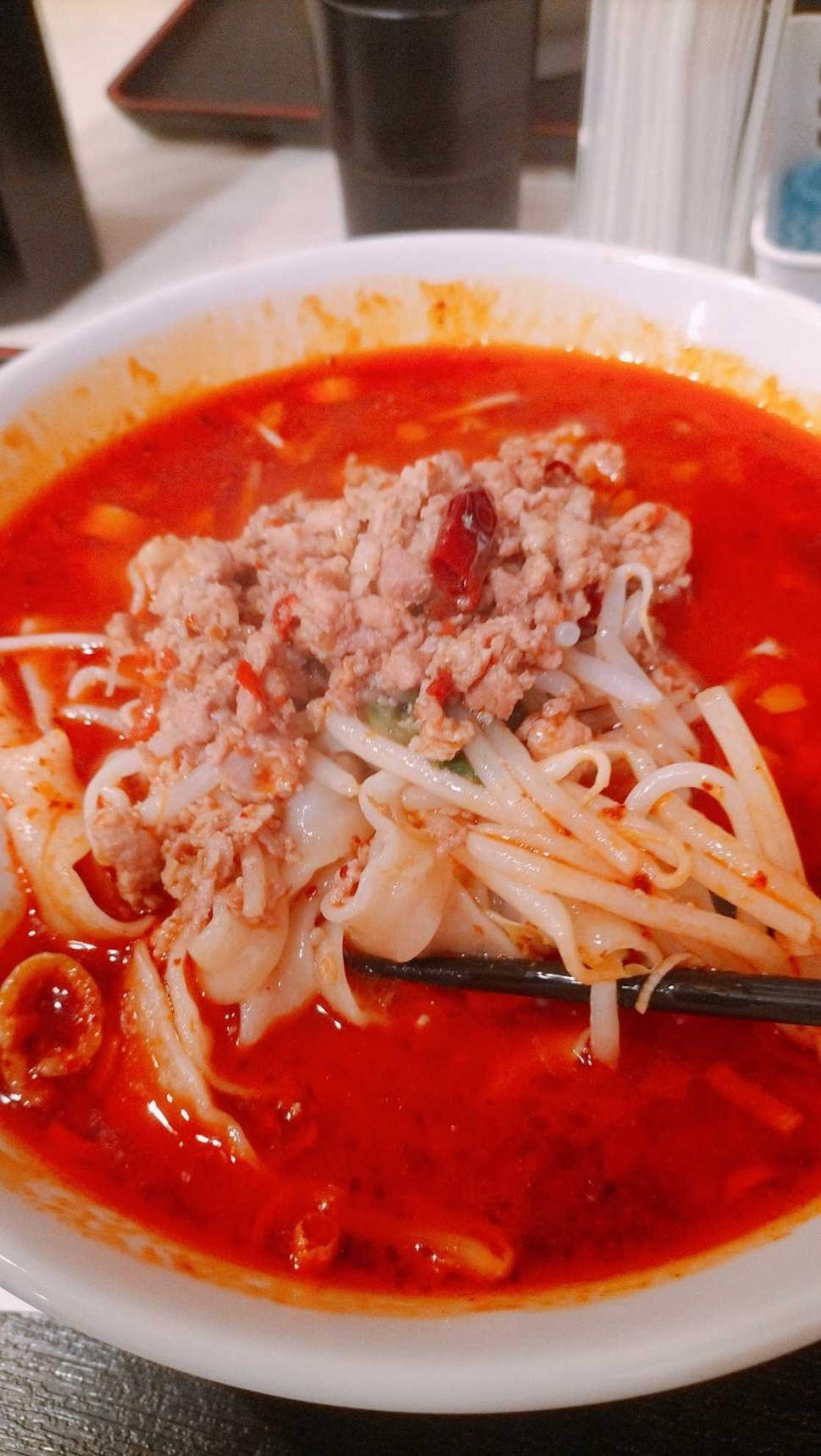 暑い日こそ辛いモノ!毎度こちらを頼んでしまいますが(このお店は刀削麺も種類豊富で蒸し鶏刀削麺、坦々刀削麺、牛バラ刀削麺、などなど…)