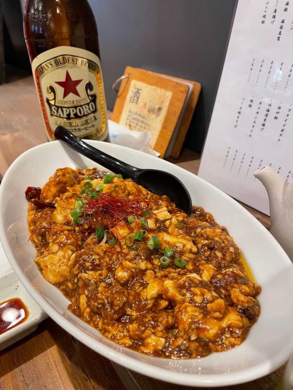 居酒屋だが、麻婆豆腐が常連さんとかからも人気らしい。店主の方が気さくな方で、話の流れでめちゃくちゃ辛く作ってくれたらしいが、すみません…でもすごく美味しかった!味濃いめ!友達はめちゃ汗かきながら食べてて笑った。