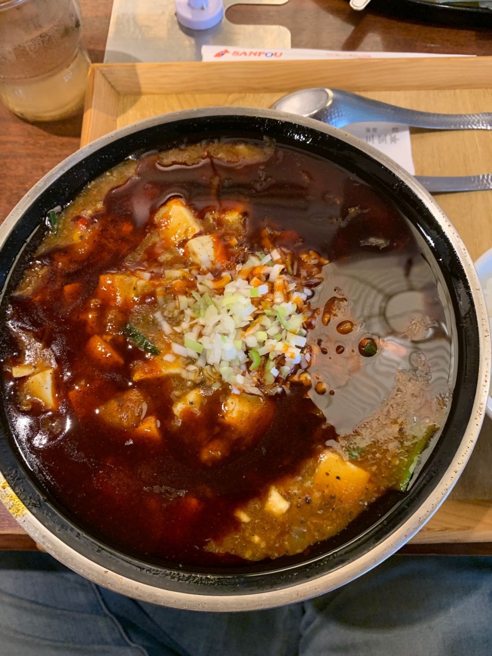 辛さはそれなりでしたが、山椒が効いているため痺れ効果があり、辛さが増された感じがします。