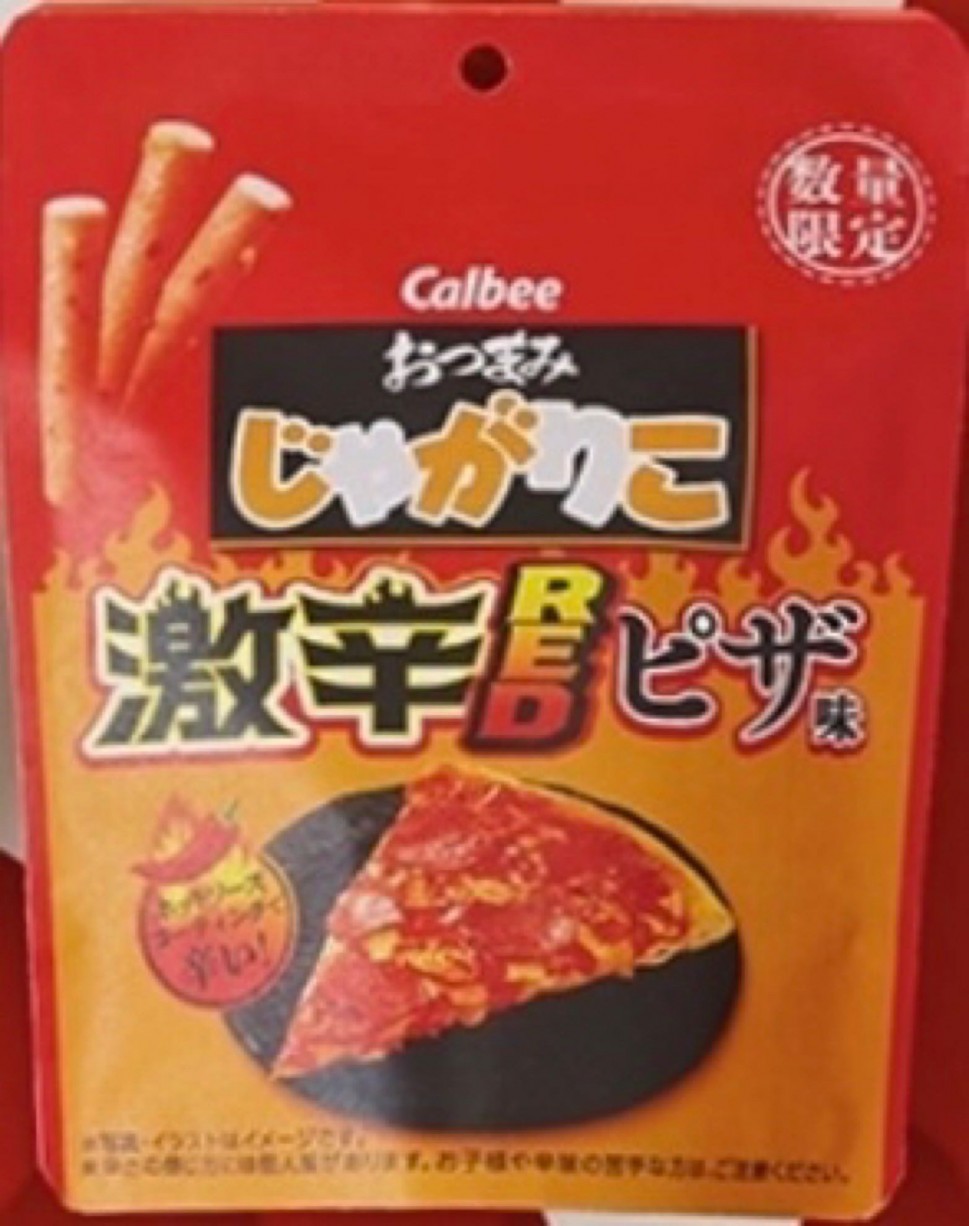 あれ‼️もしかしてジャス辛か❗️ピザの味🍕美味しいピザ生地とチーズとサラミとトマトの味がする!カリカリといつまでも食べていられる。LAWSON、ミニストップ限定品です😊