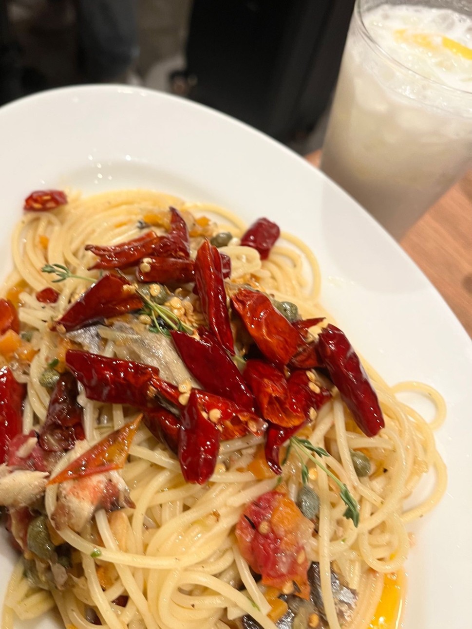 旨いねー!単純なようで複雑なようで、サラサラのオイルパスタだけどしっっかりの美味しさに大満足😊