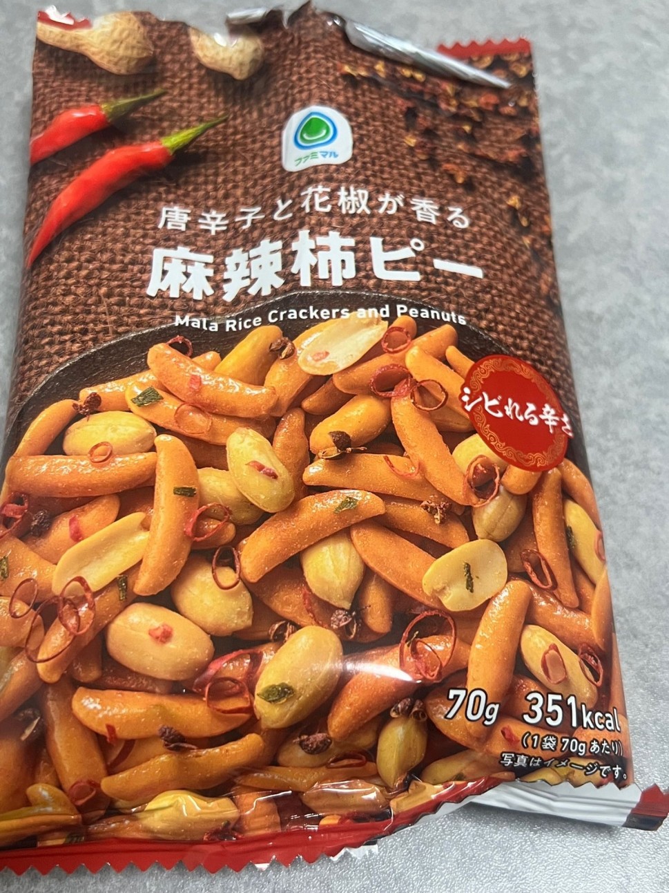 私は辛さより痺れに強いのか単に鈍感なのか痺れはあまり感じませんでしたが花椒の香りは確かに強め?でしょうか。ピーナツもほんのりオレンジ色でかなり期待しましたがポリポリ食べてしまうとピーナツの味が買ってしまい辛さを感じる前にどこかへ。柿の種も輪切りの唐辛子と一緒に食べていると美味しいね~で食べ終わってしまいました。もっともっと辛いと嬉しいですね。