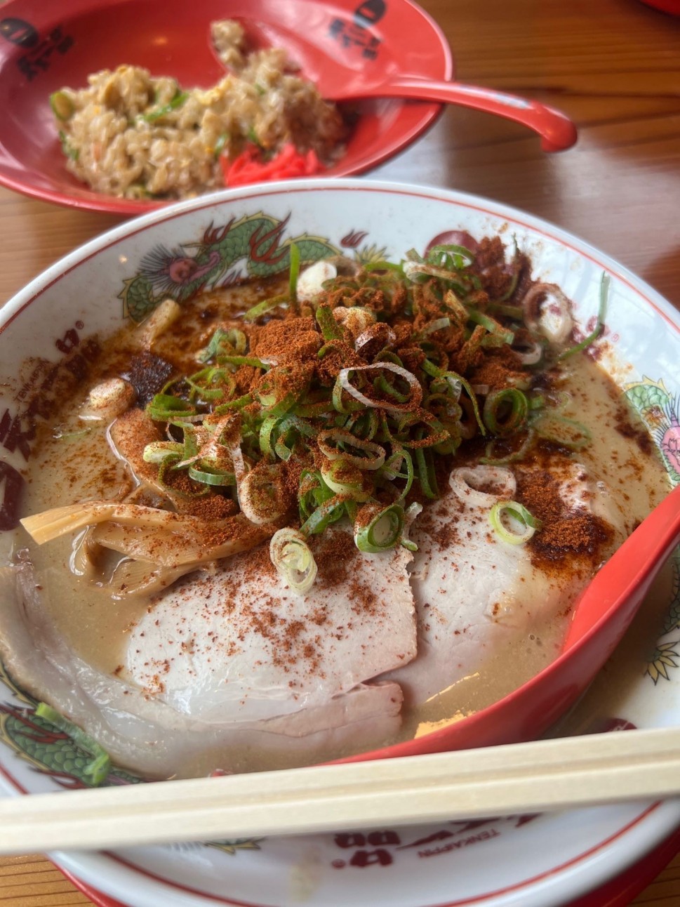 メニューに辛さに挑戦!みたいに書いていましたし写真を見る限りは辛そうでしたので期待して頼んでみましたがメニュー写真程鮮やかな赤さはなく1口食べると唐辛子より一瞬カレー?と思うようなスパイスの香りが鼻を抜けました。美味しいのは美味しいですが私には物足りませんでした。残りのスープにご飯入れて綺麗に完食しました。