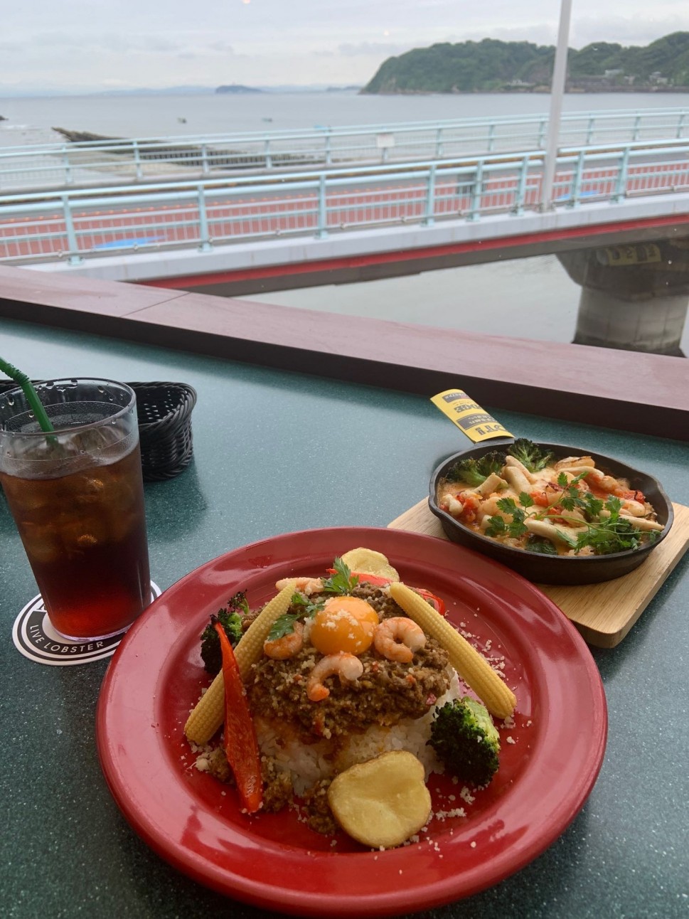 メイン友達がロブスター&シーフードのドリア 私は、シュリンプマサラキーマカレー他にもメインは選べます!