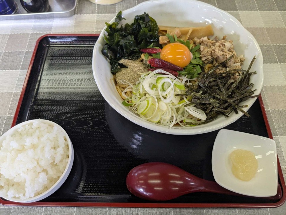 まぜそばのトッピングには赤唐辛子が少々乗っていたものの、見た目はそこまで辛くなさそう。