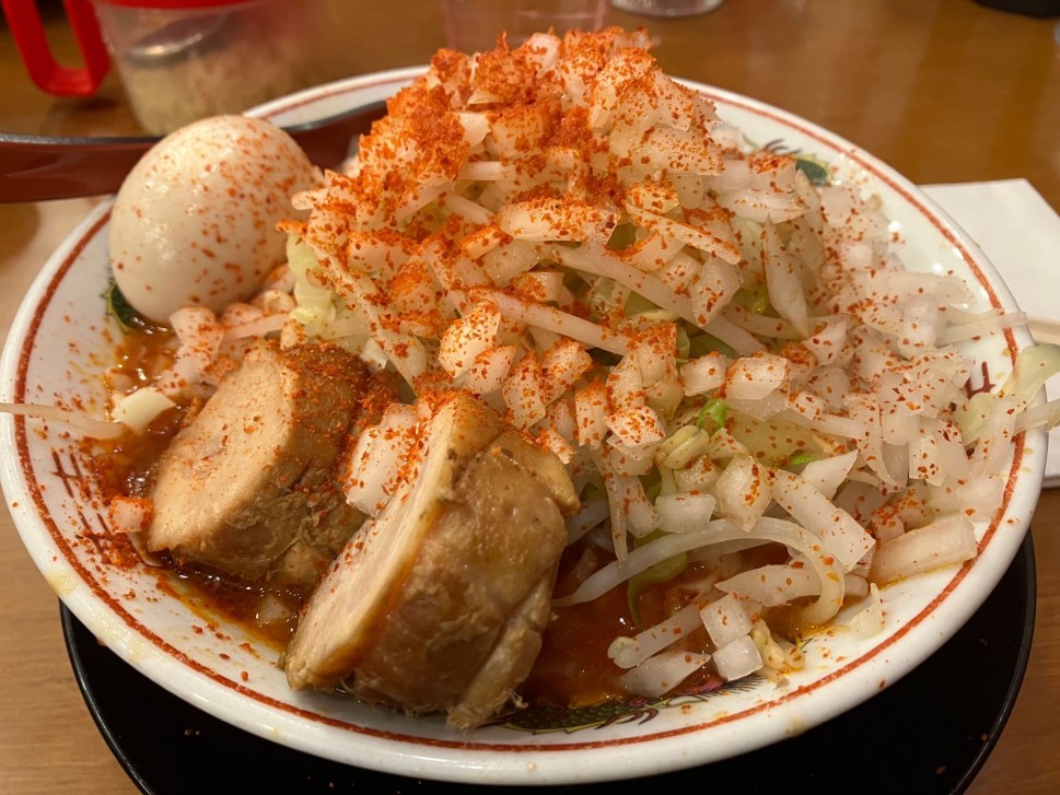 通常のラーメンを買うと元から玉ねぎとチャーシューが2枚付き、