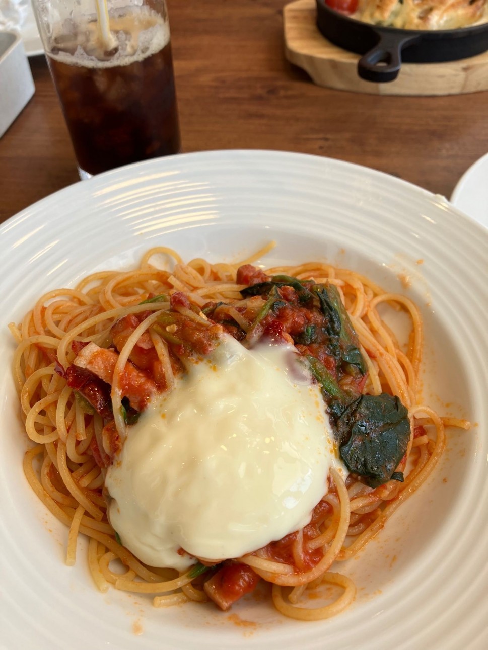 とろ〜りチーズとベーコンのガーリックトマトソース!