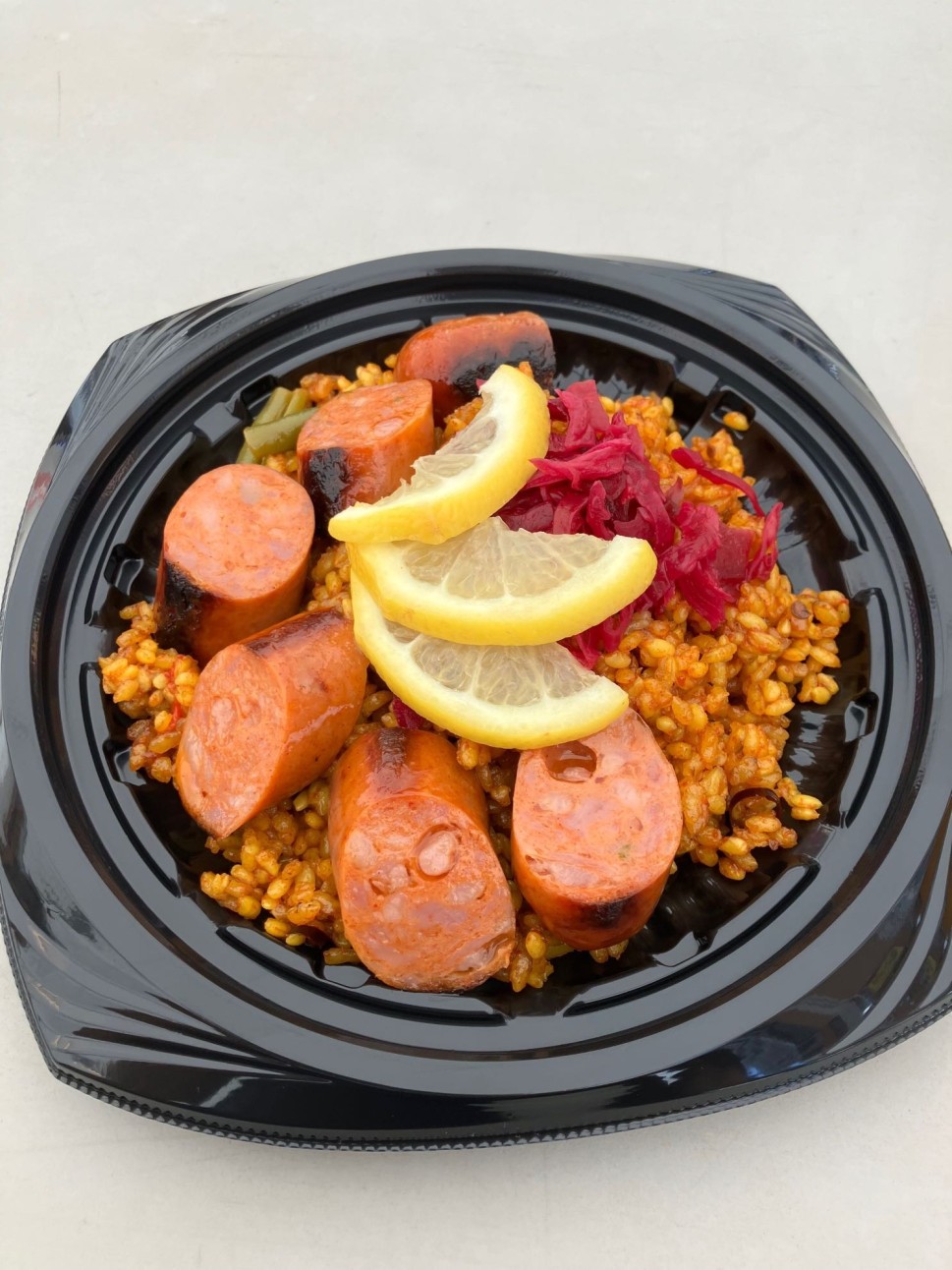 フランクの旨みはもちろん、炊き込みライスが美味しいこと!!硬めでさらりとしています!
