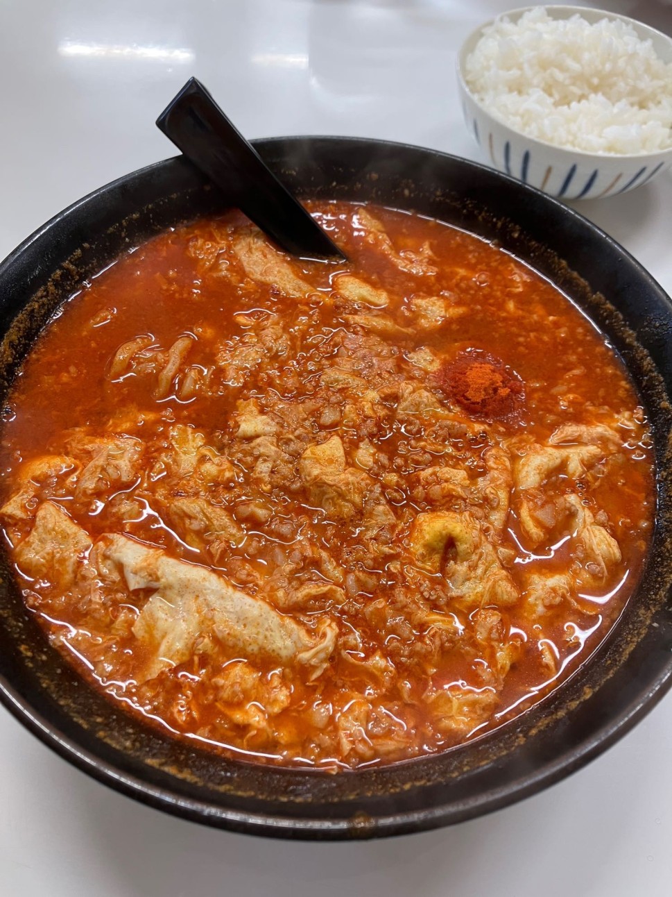 追い辛できる様に卓上にラー油だけでなく、一味とかあると嬉しかったです!