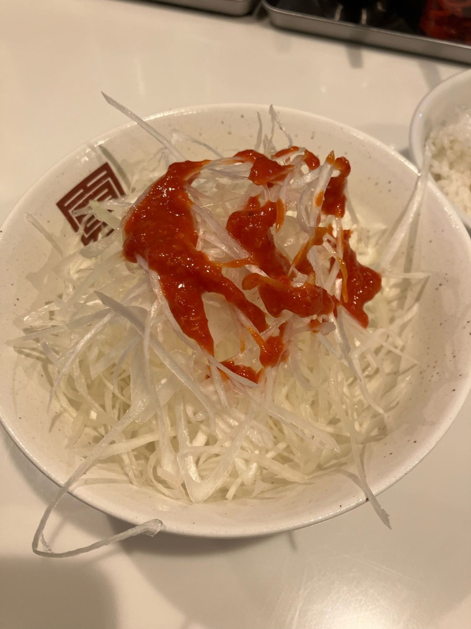 のすけ さんの白髪ネギ辛みダレ!やくみトッピングだろうけど白髪ネギの新鮮な辛みとこの辛みダレが合う!しかもそのまま食べても美味しい一品!!