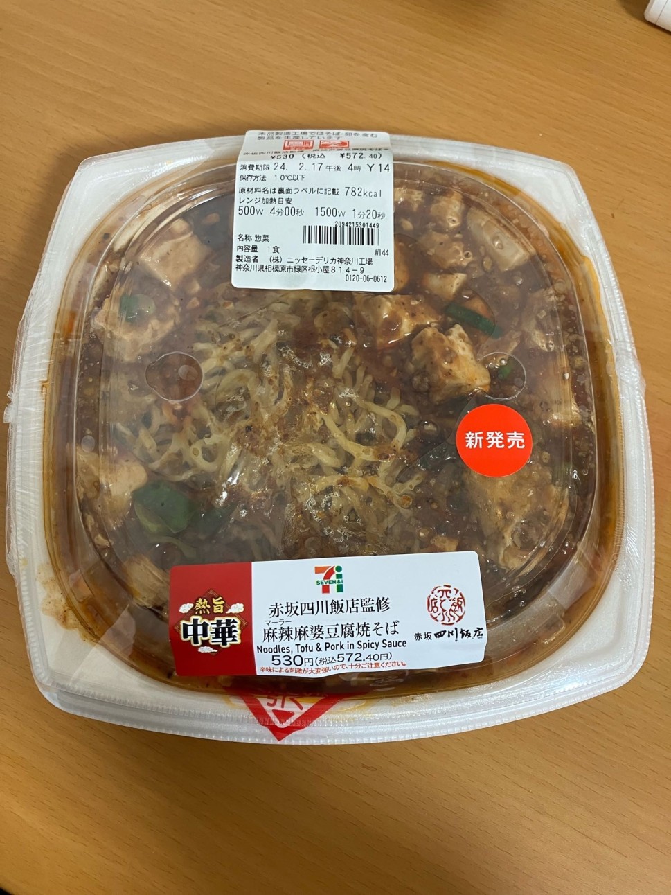 セブンイレブンさんの赤坂四川飯店監修 麻辣麻婆豆腐焼そば!辛みが非常に強いと書かれた一品です!