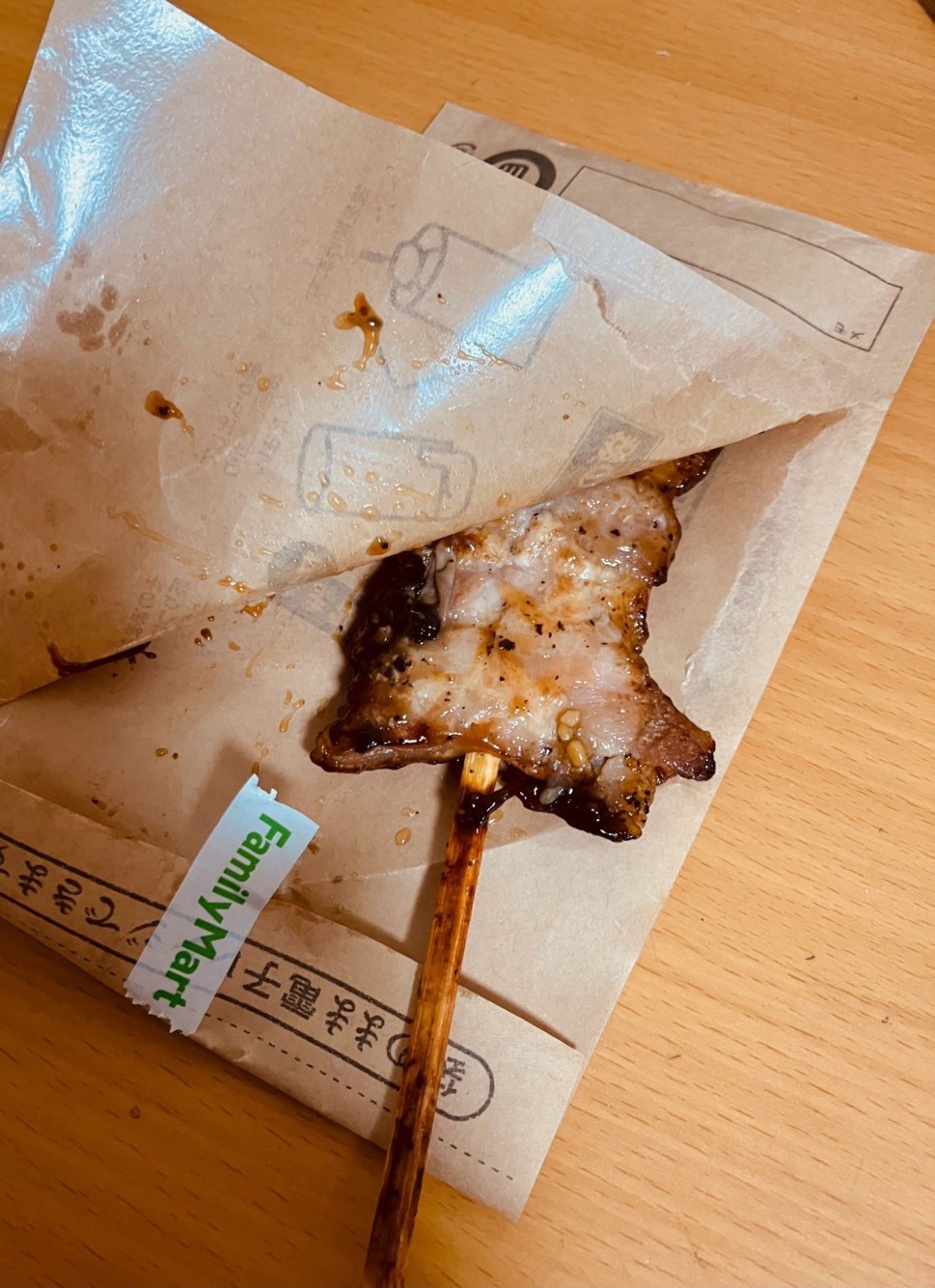 ファミリーマートさんの山賊焼!辛みが苦手な方はご注意と書かれた一品です。一口目からピリリと辛み!
