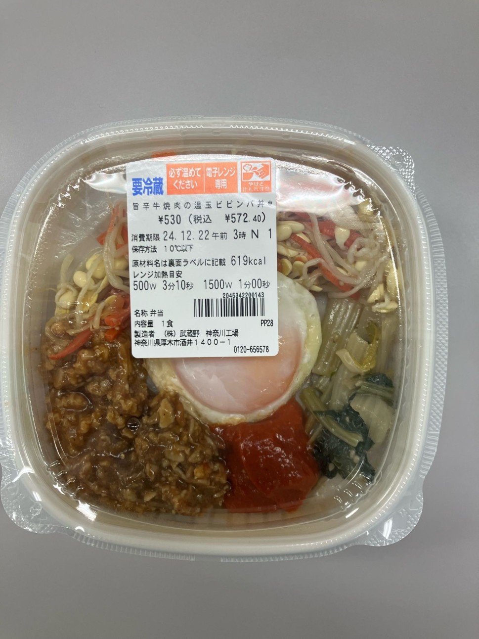 セブンイレブンさんの旨辛牛焼肉の温玉ビビンバ丼!餅麦入りの雑穀米での登場〜!