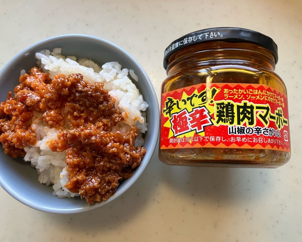 極辛鶏肉マーボー!極辛とありましたが最初ピリッとしますが油に包まれてるので辛味が和らいでます。