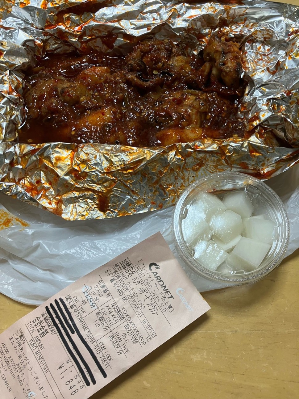 また、チキンも歯応えあってそれがまた炭火焼きの香りがして美味しい、焦がしネギの辛ソースがまた良き!トッポギももちもち。箸が止まらない〜!