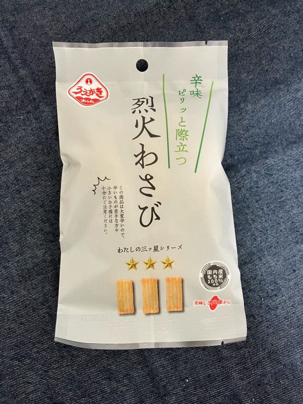 植垣米菓さんの烈火わさび!パッケージが新しくなって登場でしょうか。