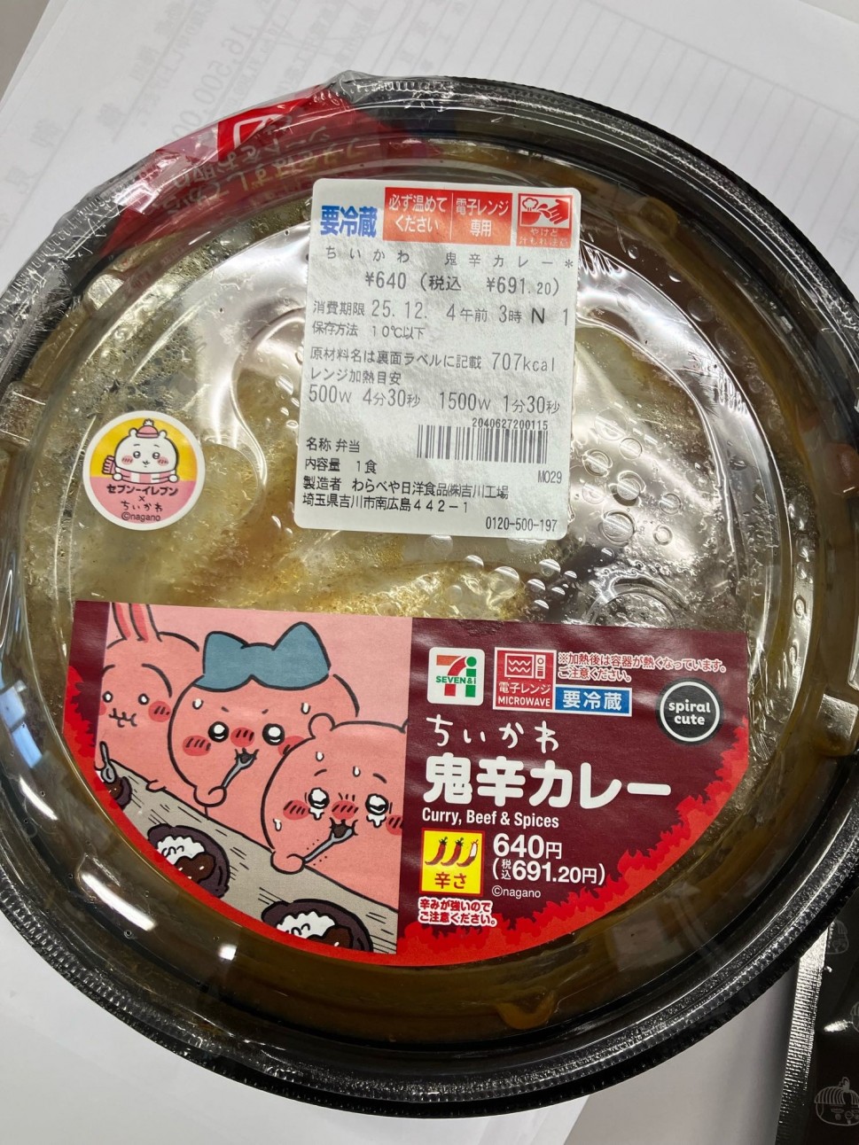 セブンイレブンさんのちいかわ鬼辛カレー!美味しい辛口。