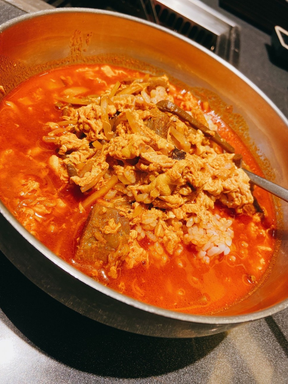 焼肉を食べず、カルビクッパをいただきました。辛さは、2倍、3倍、激辛とありましたので、1番上の激辛を注文しました。追い辛も出来るよう、別皿でハバネロ(多分)のパウダーも持ってきてくれました☺️何口か食べてみて少し辛味が足りなかったので、パウダーを全部入れたら、CoCo壱の10辛くらいの辛さになったと思います。味もめちゃくちゃ美味しいし、カルビも柔らかくて美味でした😍量は結構多かったので、少食の方にはキツイかもです🥲※辛ジャッジは、追い辛前の数値です。