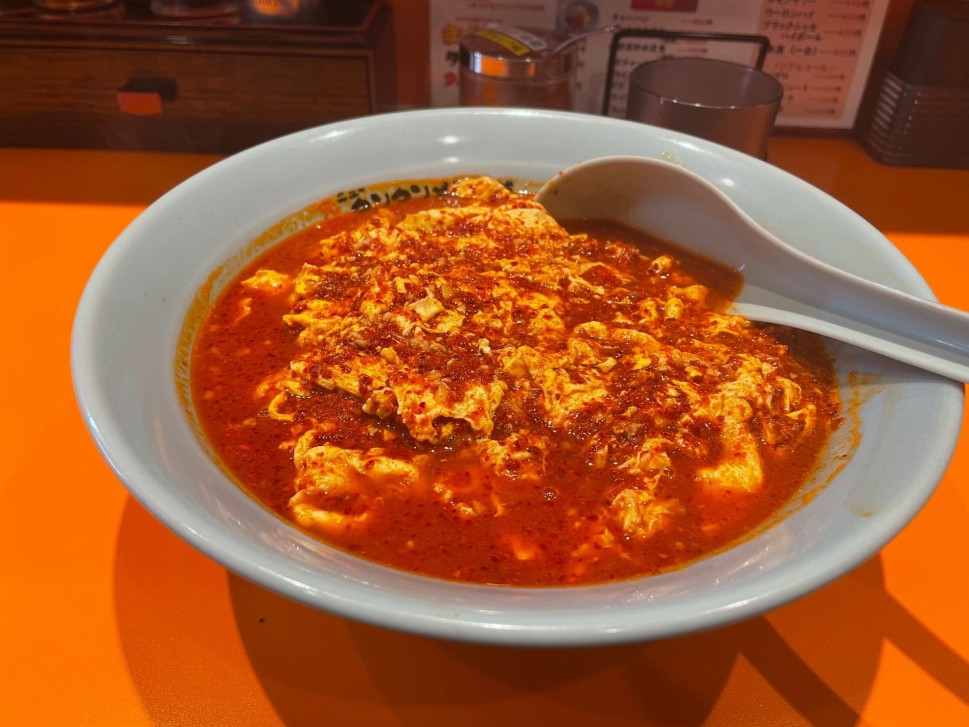 めちゃ辛よりも一段上の新メニュー?鬼というがめちゃ辛と大差ないです。どちらも味わえる辛さで卵とニンニク、ひき肉を楽しめちゃいます。