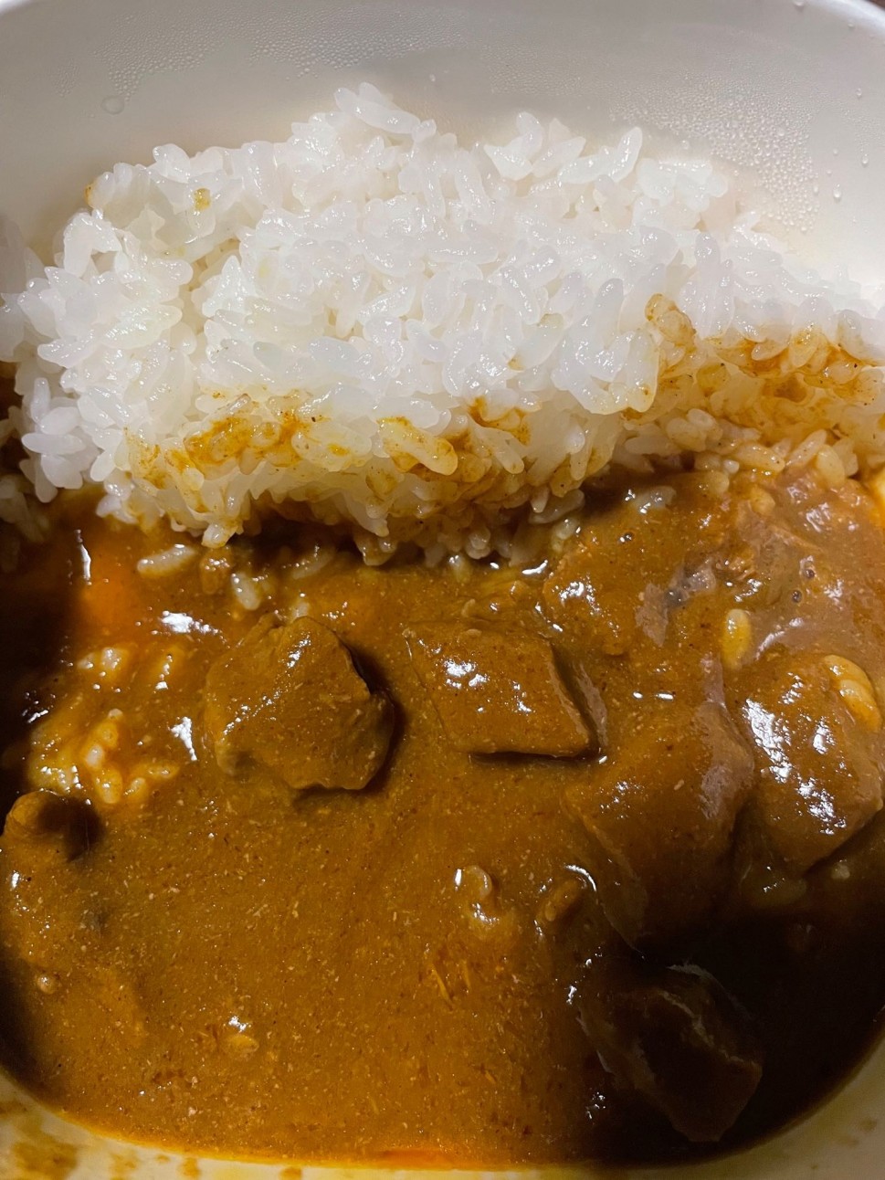 凄く香辛料を感じるスパイシーなカレーでした。お肉もゴロゴロはいってます😀コンビニカレーなので大衆的な辛さだと思ってましたが、きちんと辛さもありカレーフェス凄いなと感動しました。