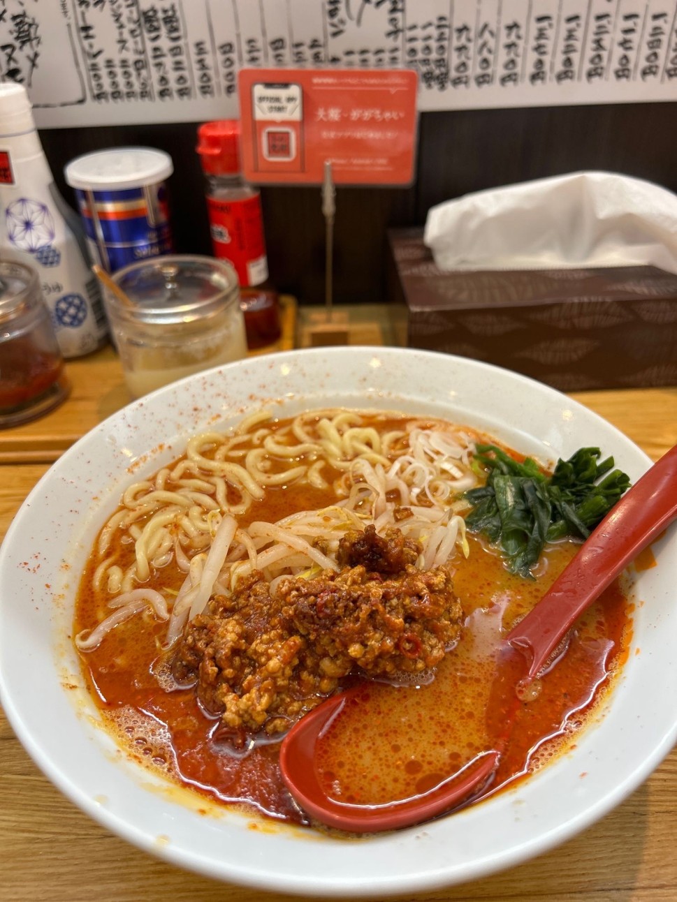 豚骨醤油ベースに豆板醤や唐辛子が入ってるのか、豚骨が効いてて美味しかったです!