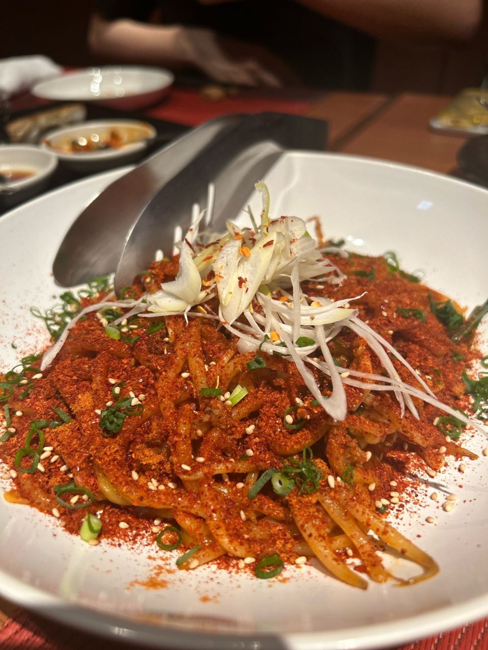 5口くらい食べると口の中が痛くなります笑 でも辛さの奥に甘さもあり、麺がモチモチしておいしかったです⭐️
