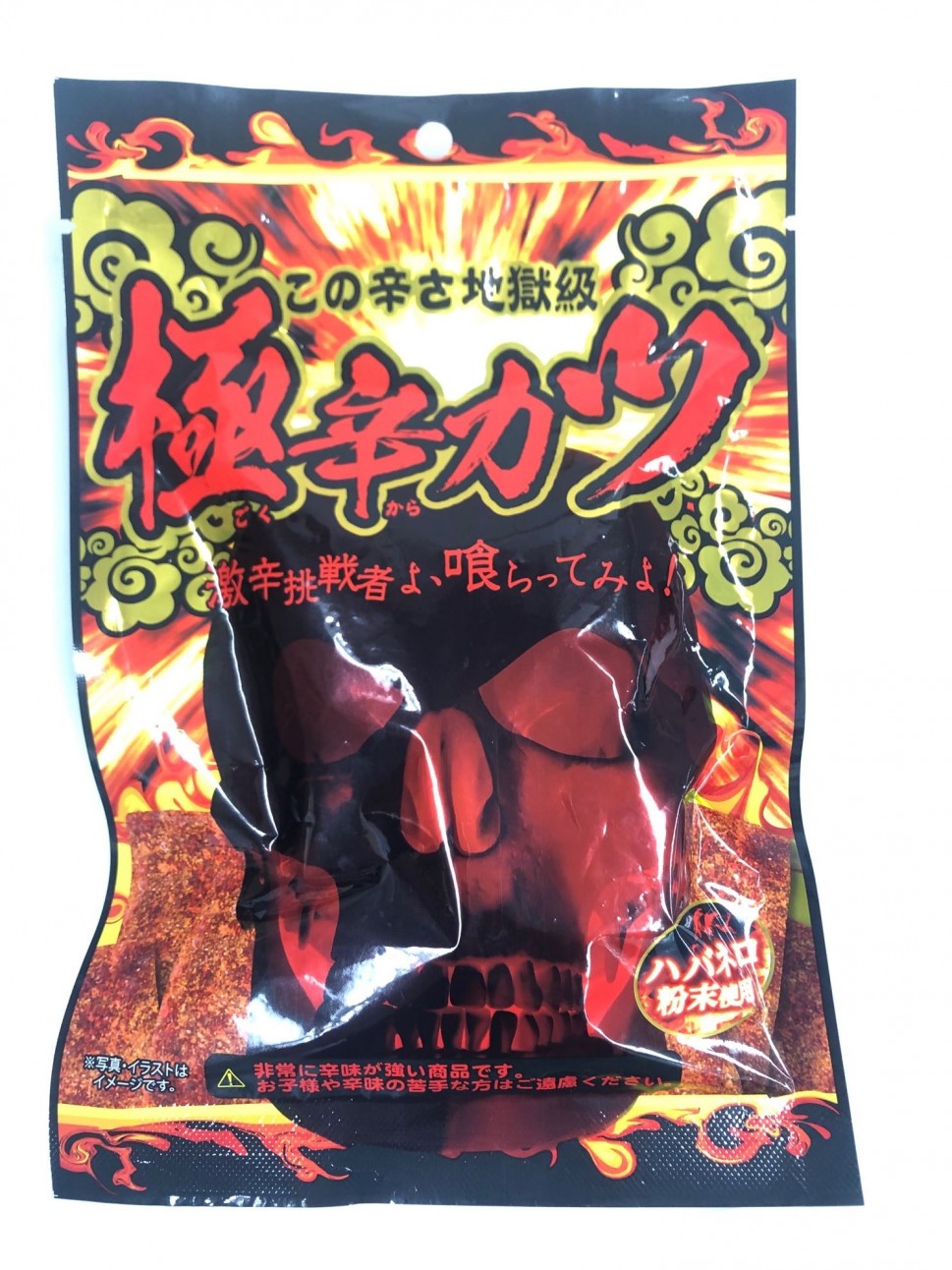 激辛挑戦者よ、喰らってみよ!と言われたら食べるしかありませんw見た目は昔懐かしの駄菓子のカツです。ソースもかかっていて懐かしいのですが、ハバネロ粉末で辛く仕上がっています。駄菓子感覚で食べると痛い目にあいます。