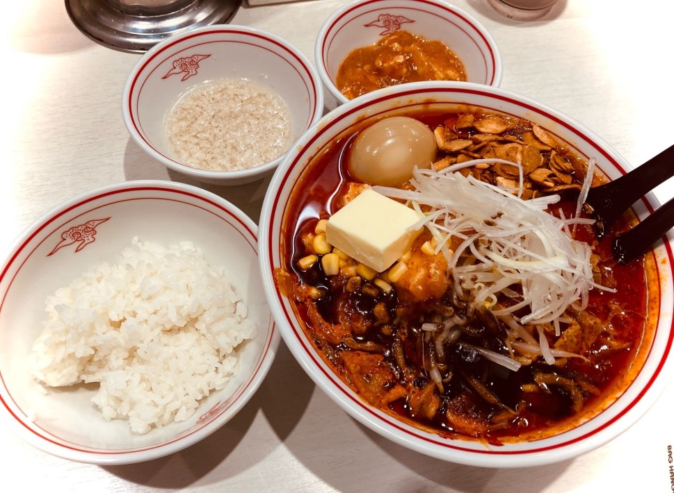 北極ベースに、もやし・ニンニクチップ・白髪ねぎ・バター・コーン・北極玉子・唐辛子・蒙古麻婆がトッピングされた「超豪華北極」✨具材たっぷり食べ応え充分ですね✨