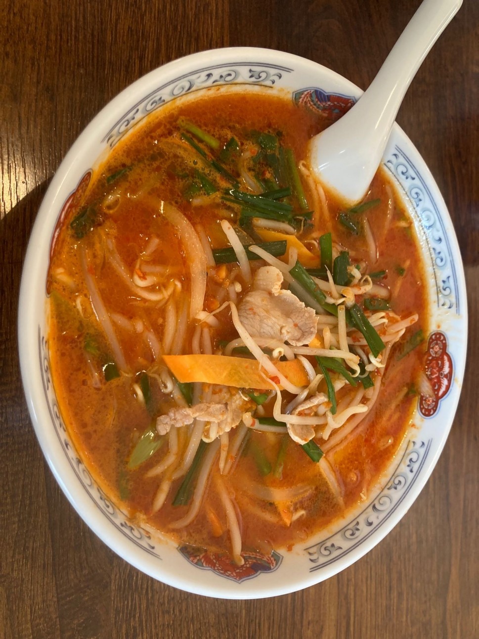 地方のラーメン屋の激辛ラーメンは辛くない印象がありますが、これは結構辛く、汗が流れてきます。