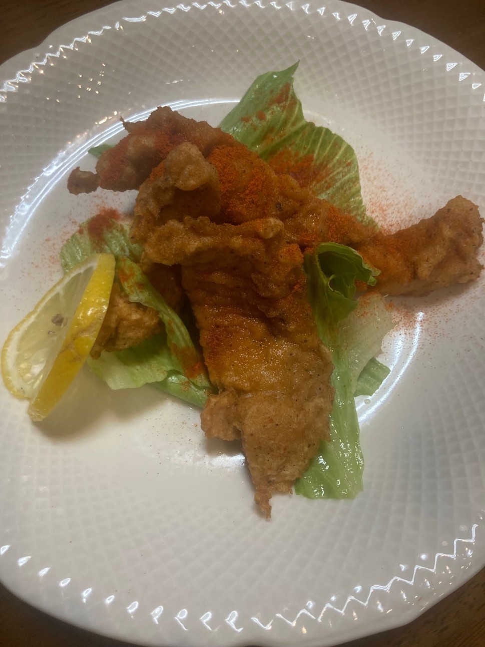 鮪の唐揚げにキャロライナリーパーをかけてある料理です。