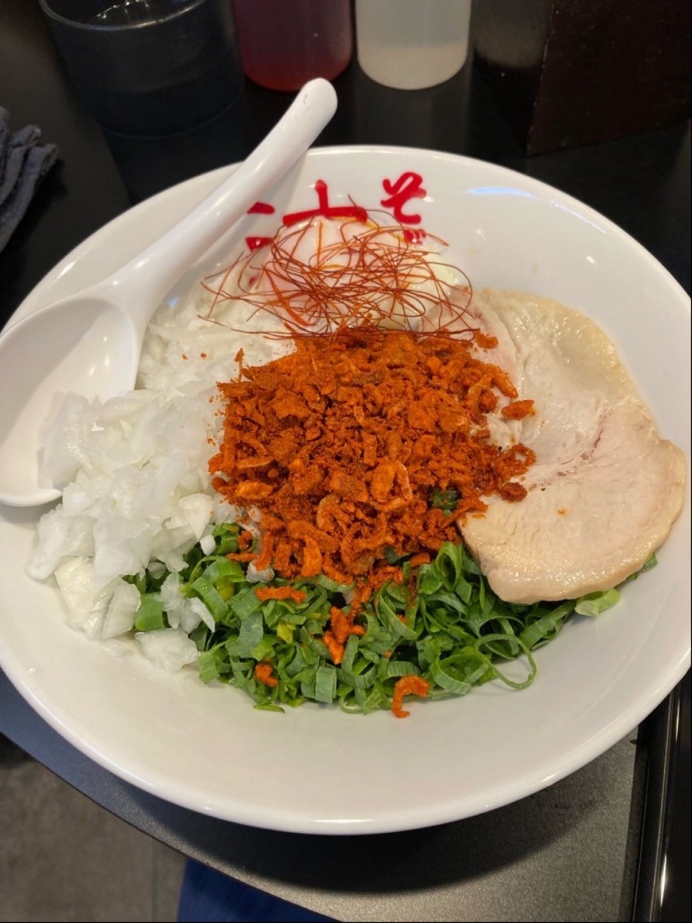高崎赤盛は油そばに辛みが載っていますが、辛さを感じる程度の辛さでした。