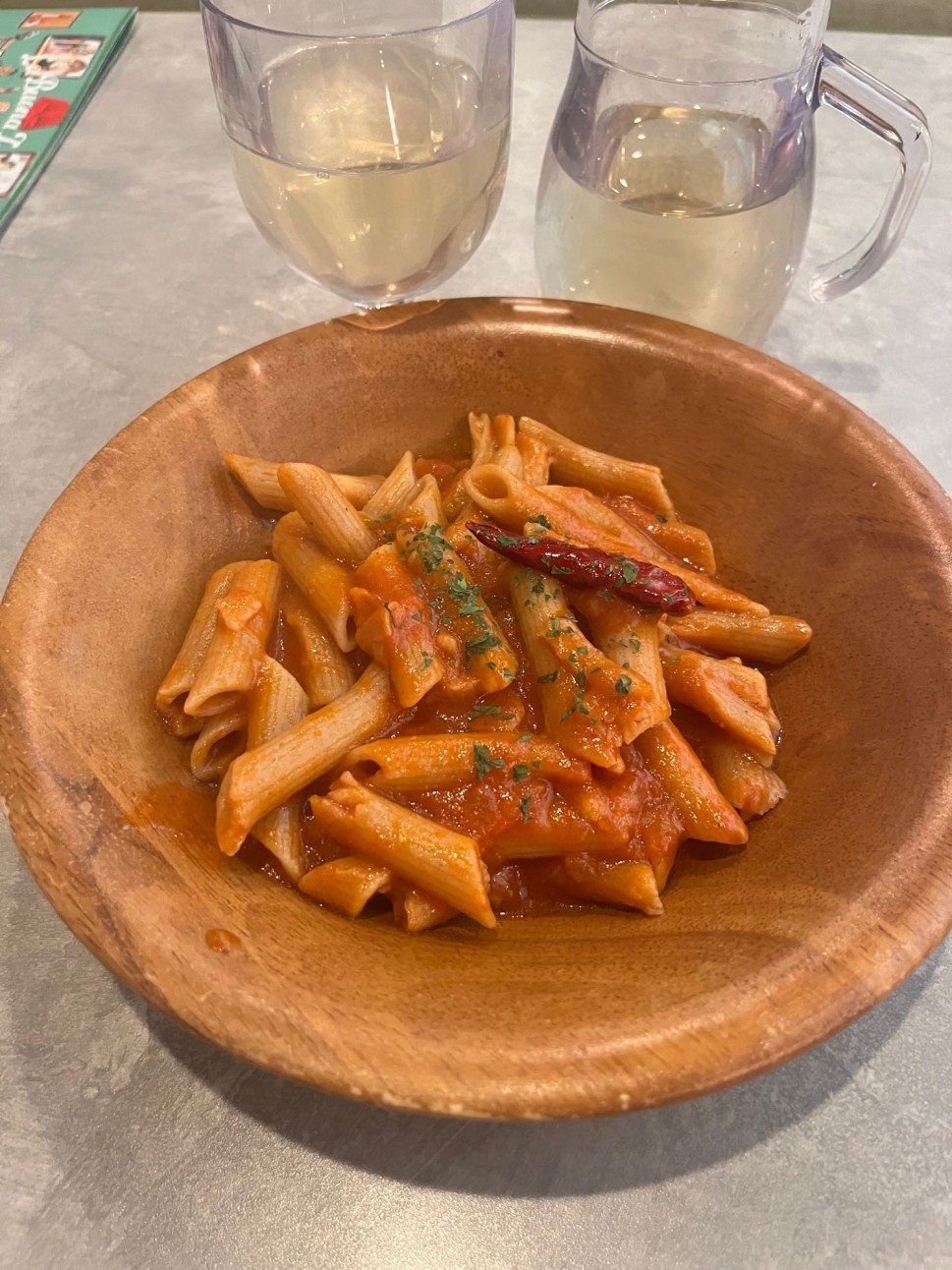 ワインの小デカンタが200円で、パスタ430円を合わせても600円台と激安でした。
