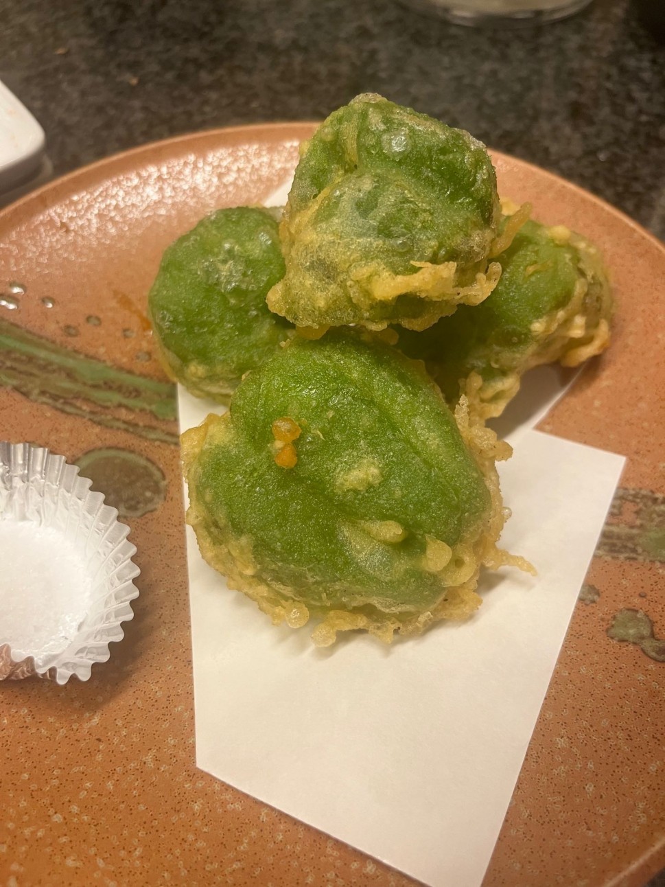 やってきたのはピーマンの天ぷらだったため、かぐら南蛮という辛味が付いているんだろうなと予想しました。