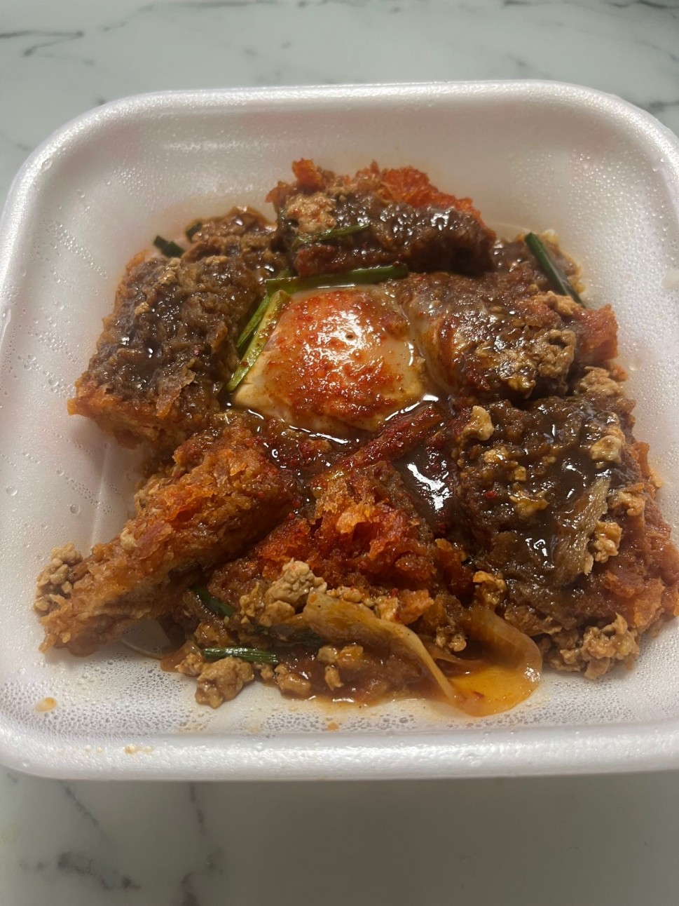 カツ丼チェーン店の期間限定の辛メニューを持ち帰りで頂きました。