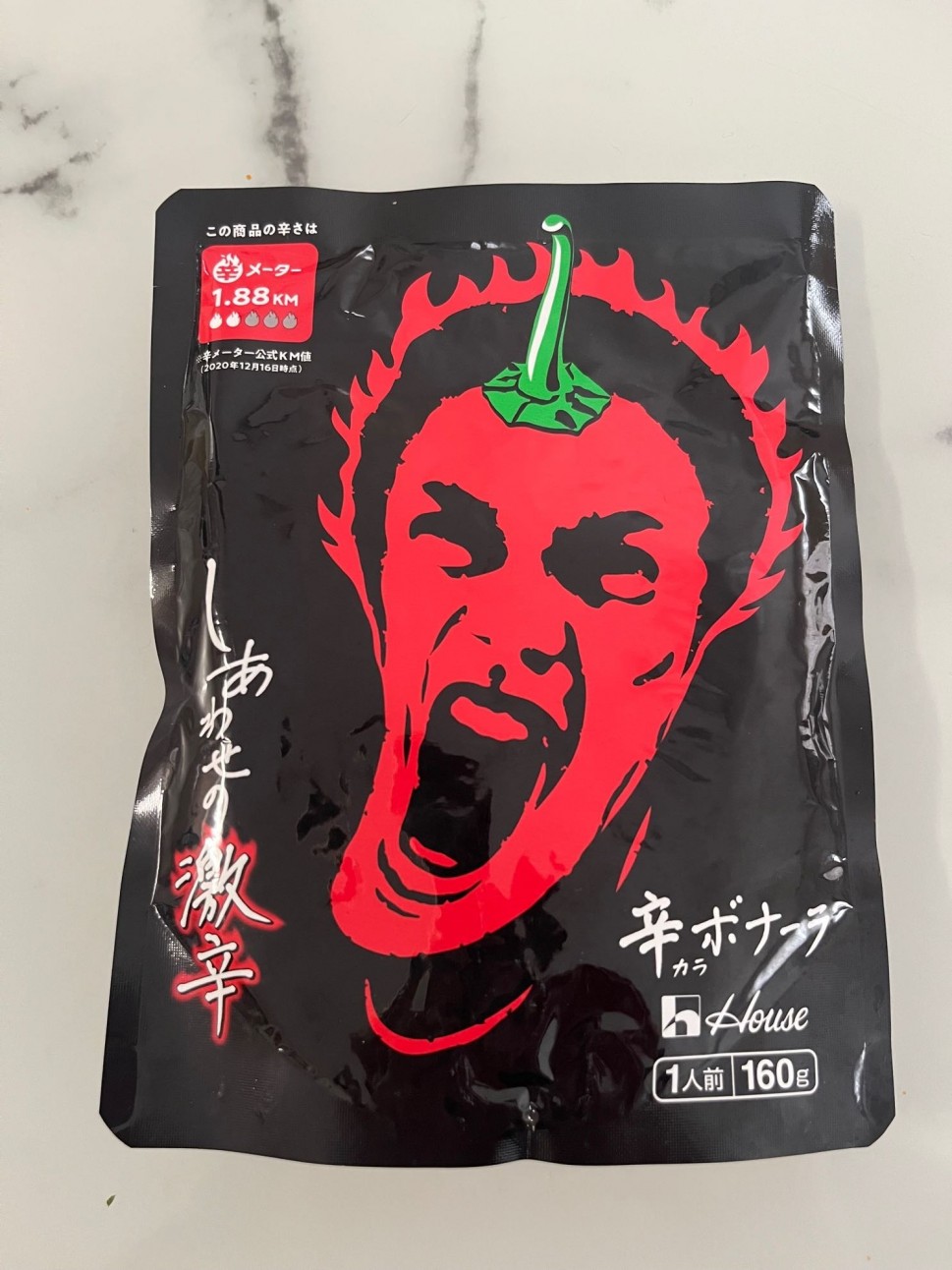 同じパスタソースの辛ボロネーゼが2.95kmに対し、1.88kmと抑えめの辛さ表示です。