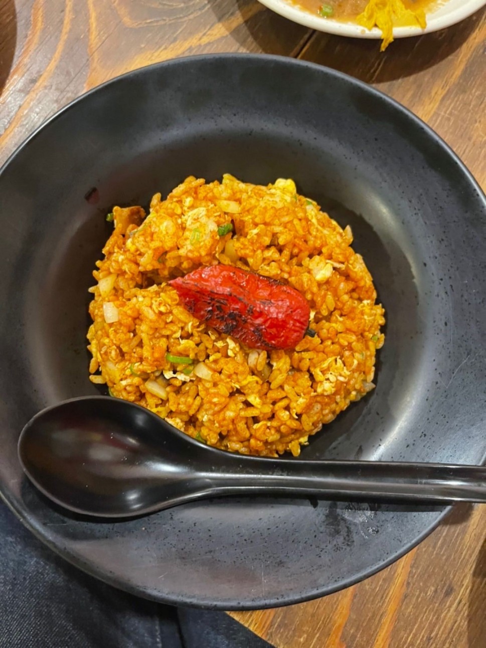 チャーハン自体は旨みを感じられとっても美味しく、食べやすく辛くなかったのですが、上に乗っているジョロキアをかじると口の中に辛さが駆け巡りました笑