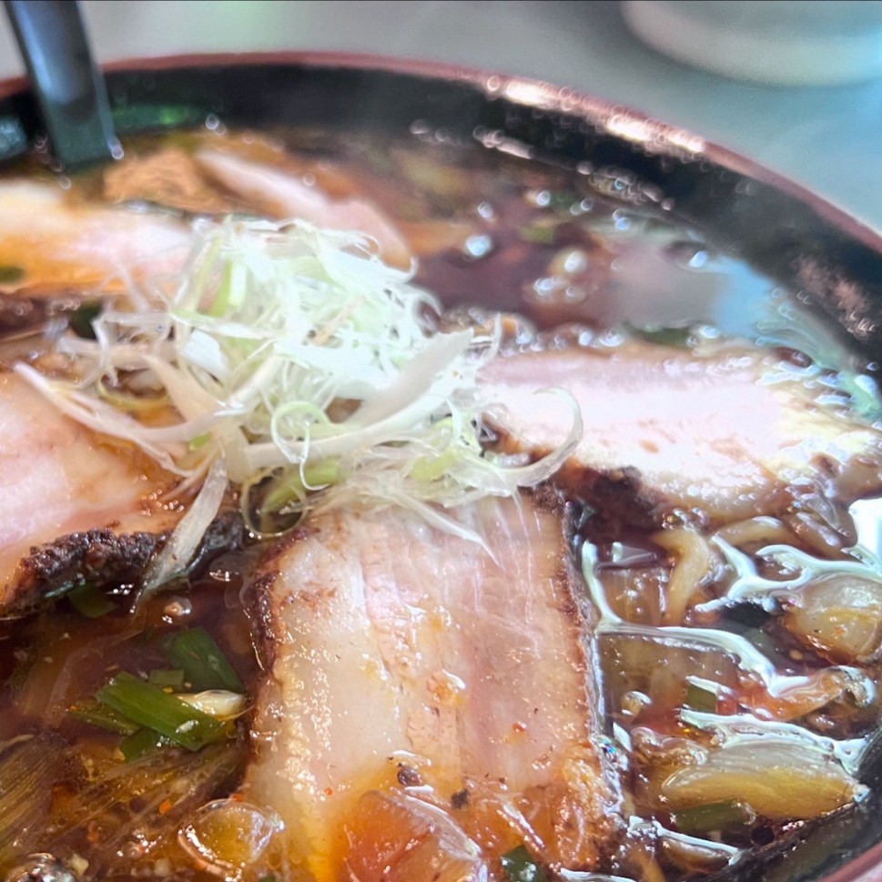 玉ねぎ、にんにくが大量に入っているスープにやわらかチャーシュー。