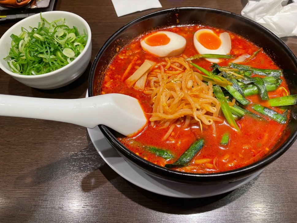 近くのラーメン屋で1番好きです。もう少し辛さが欲しいですが、味が濃く熱々なので全体的には丁度いいかも知れません。よくネギトッピングをします。