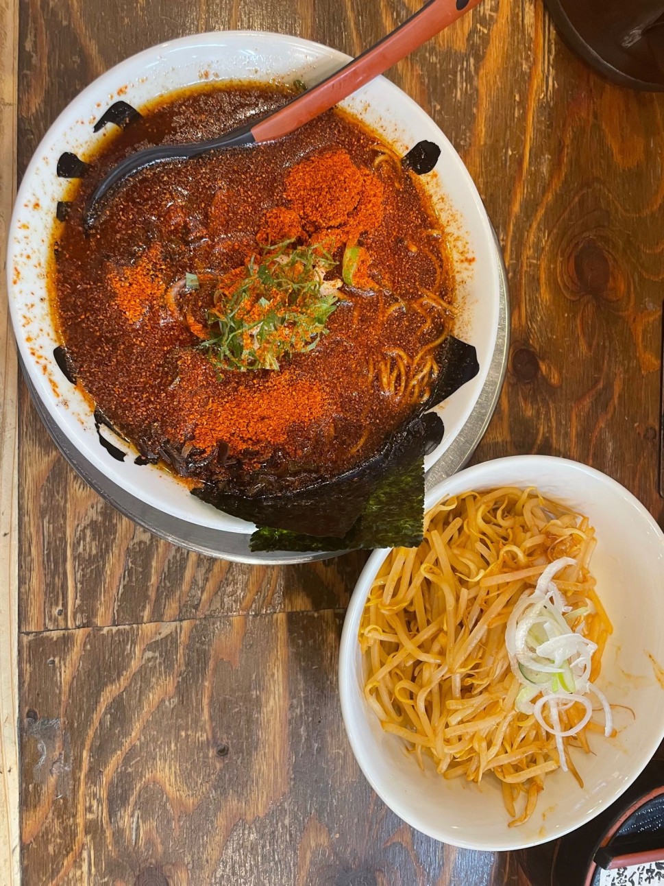 にんにくペースト?が置いてあって、入れるとコクが出て一気に美味しくなった。辛さに負けないコクで、ついつい入れ過ぎに注意。