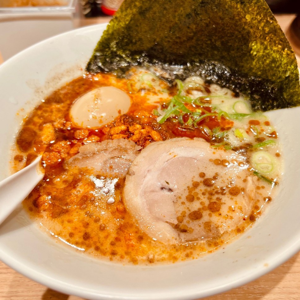 細い博多麺に良く絡むスープで、ラーメンには珍しいエスニックな辛さでした。
