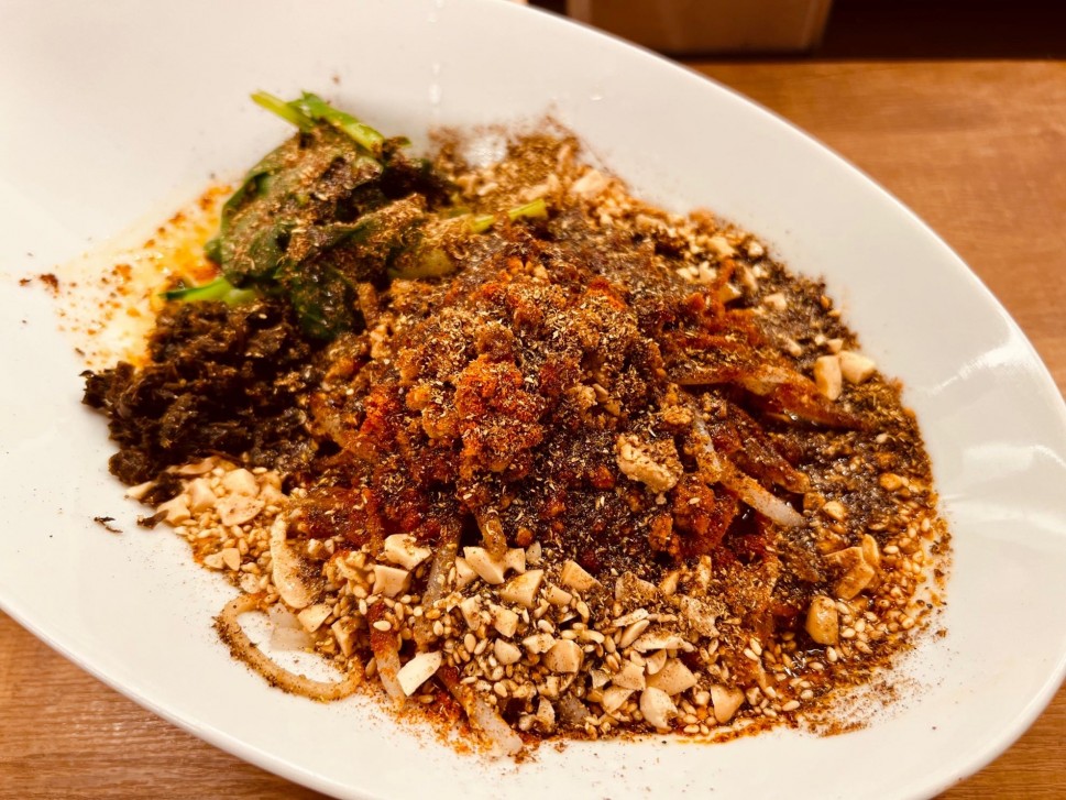 花椒で唇がジビレるけど、心地良い痺れ具合で、麺を食べた後はご飯で底に残ったタレを掻き込むのが好き。