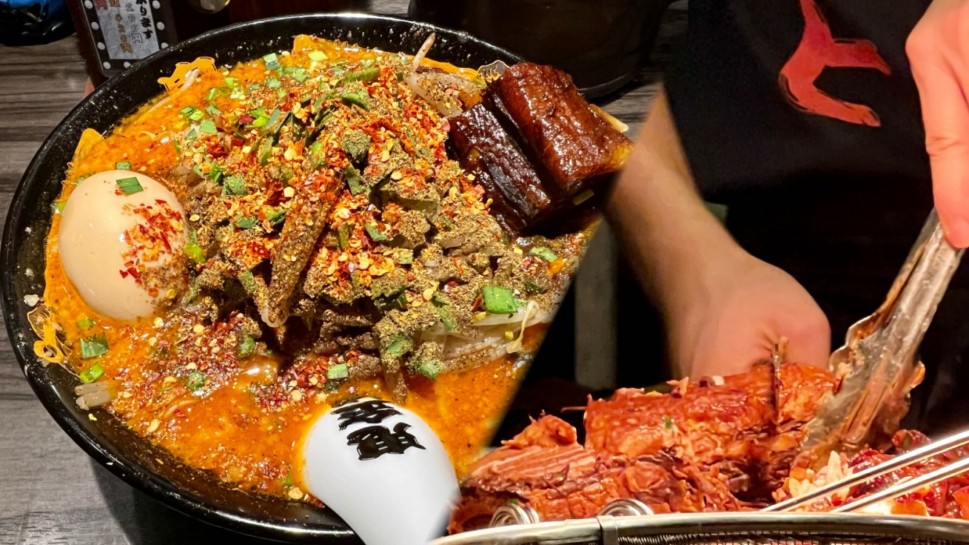 花椒も鬼痺れ!と銘打つだけあり、盛り盛りに掛けられており、口の周りをヒリヒリと痺れさせて来ます。