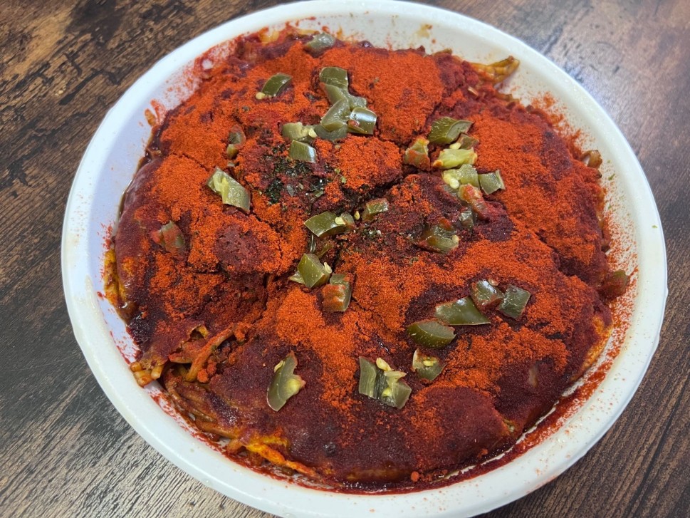 出来た瞬間ビジュアルに衝撃‼︎ 店内に唐辛子の香りが漂い危機感を煽ります!