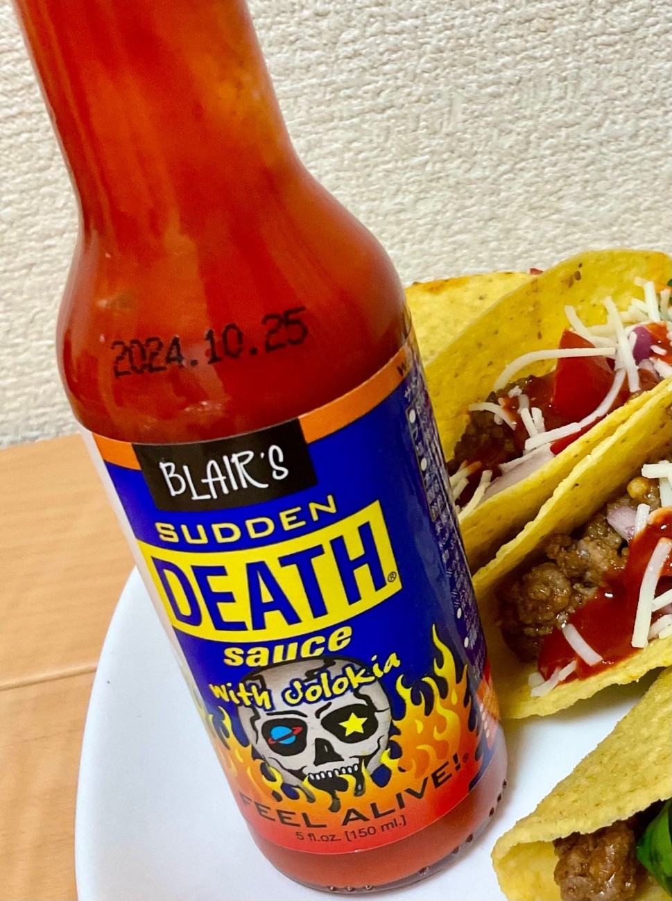 激辛ソースは苦手なのですが、タコスが食べたくなり合わせて購入。ケチャップの如くふりかけて悶絶🥵。秒で舌に刺さり喉と食堂を刺激してくれました。発汗💦は強いですが辛さの継続はそう長くありません。用法を守れば常習性のある味です。雑炊に3滴程度がマイ辛です。