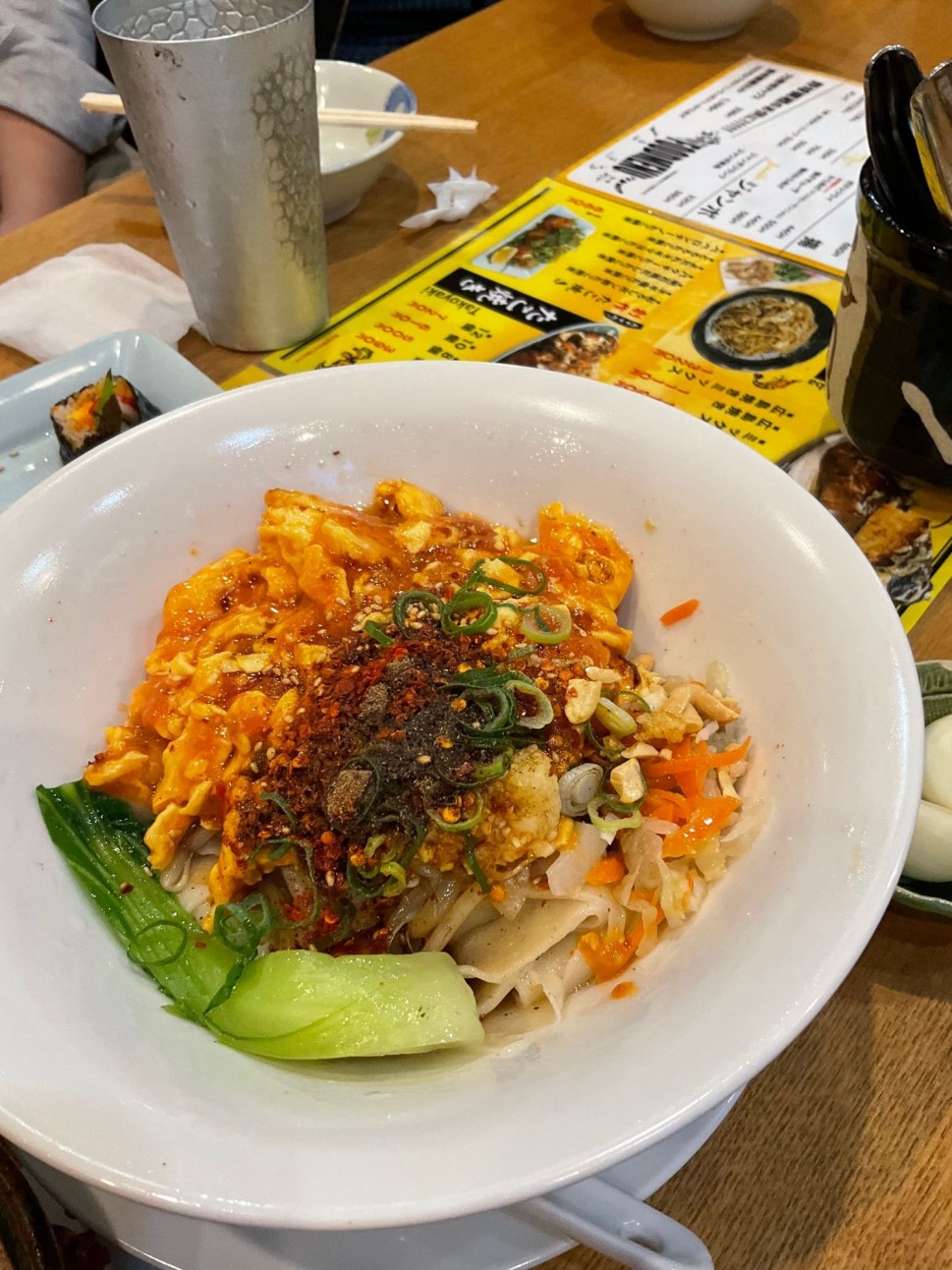 こちらはトマト麺という意味のお料理みたいです。先の麻辣より少し控えめな辛さの。たふわふわ玉子が辛さを包んでくれてます。ビャンビャン麺はこちらの方がわかりやすいですかね。