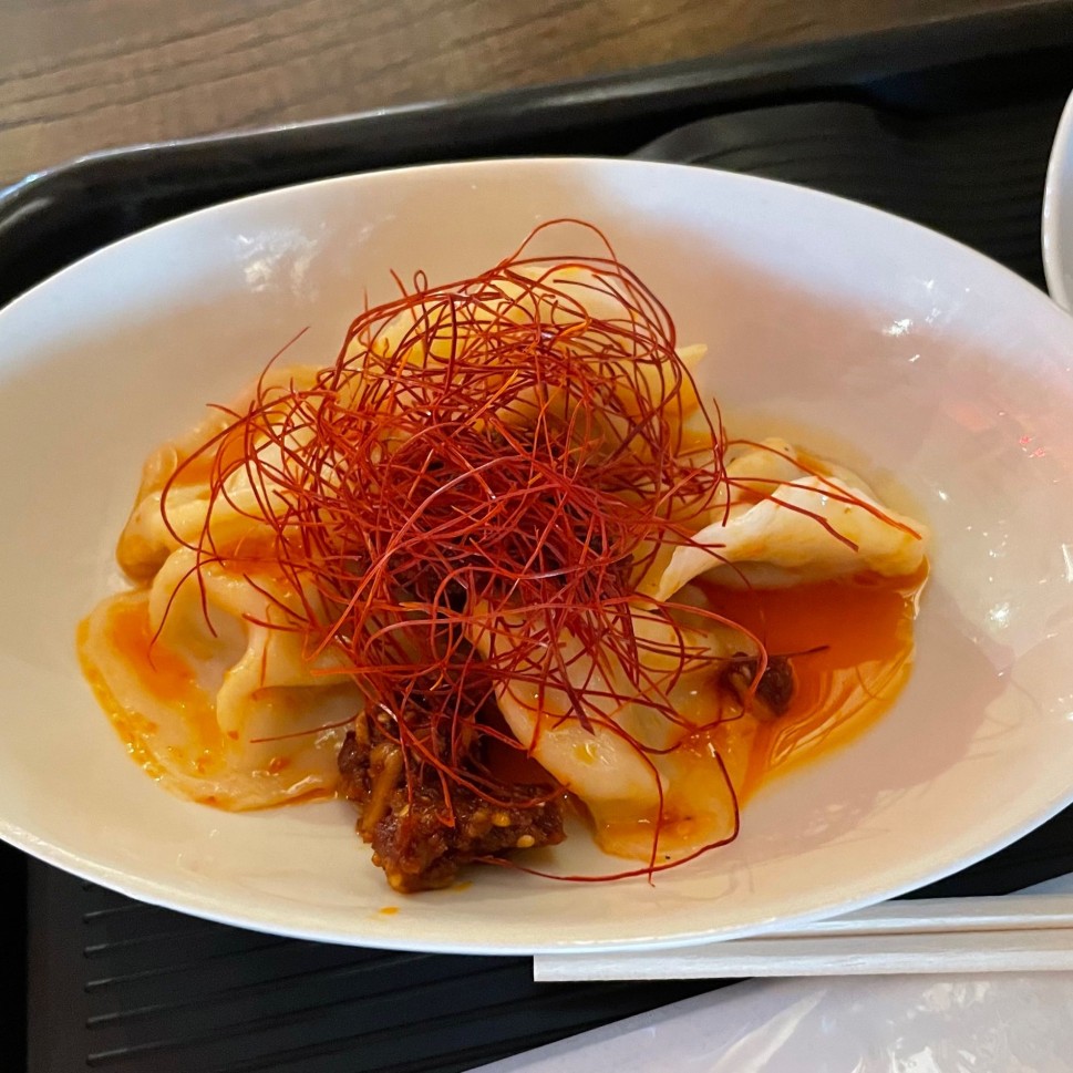 赤い壺さんと餃子専門店Theぎょるびーさんのコラボメニューです!もちもちの水餃子とラー油の相性がばっちりでとても美味しく、箸が止まりませんでした。辛みはほぼ感じられません。大衆向けのピリ辛だと思います。